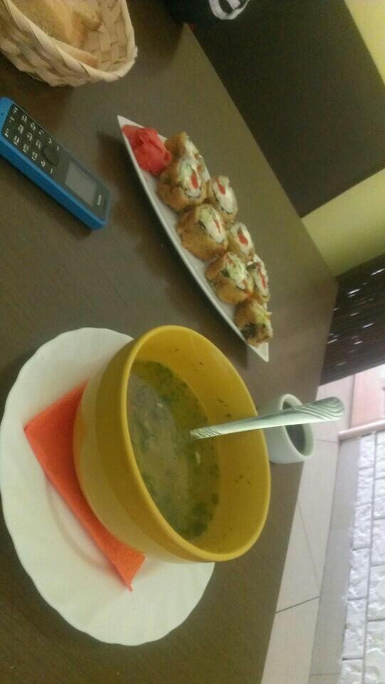 Вкусные сырный и грибной супы, пикантный салат и пирог с сыром и зеленью. Алла-кассир - лучший работник: всегда приветливая, внимательная, позитивная.