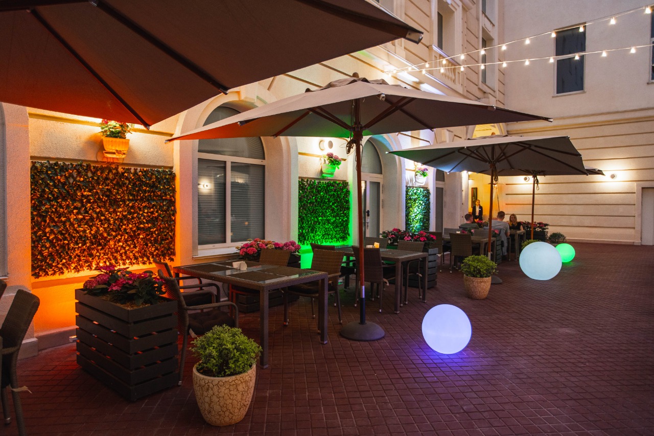 Мы предоставляем элегантные и современные локации: ресторан в европейском стиле и летняя двухуровневая терраса, вмещающая до 380 гостей на обоих уровнях.